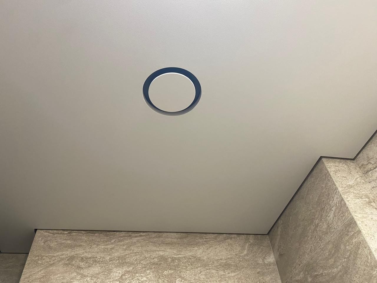 Диффузор монтируется в одной плоскости с натяжным потолком.